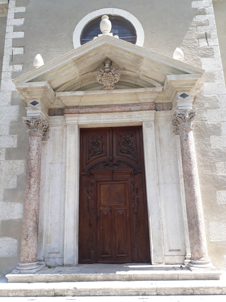 Riva del Garda è una cittadina con una forte vocazione per l’Arte, elemento primitivo rispetto alla modernistica vocazione turistica – è chiaro l’uno non esclude l’altra, anzi si completano a vicenda – lo testimonia la potenza della natura, con le sue forme astratte e perfette, i toni di colore cangianti e le foschie ispiratrici “en plein air” del lungolago; potremmo dire il fascino del contemporaneo fotografico. Ma a Riva del Garda c’è molto altro, qualcosa di più complesso e strutturato, un messaggio, anzi un “antico” protocollo di comunicazione: dati e memoria storica da non sottovalutare. Un vero è proprio scrigno di tesori artistici celati da un nudo cofanetto in un gradevole stile Neoclassico primo settecentesco, La Chiesa della Beata Vergine dell’Inviolata.