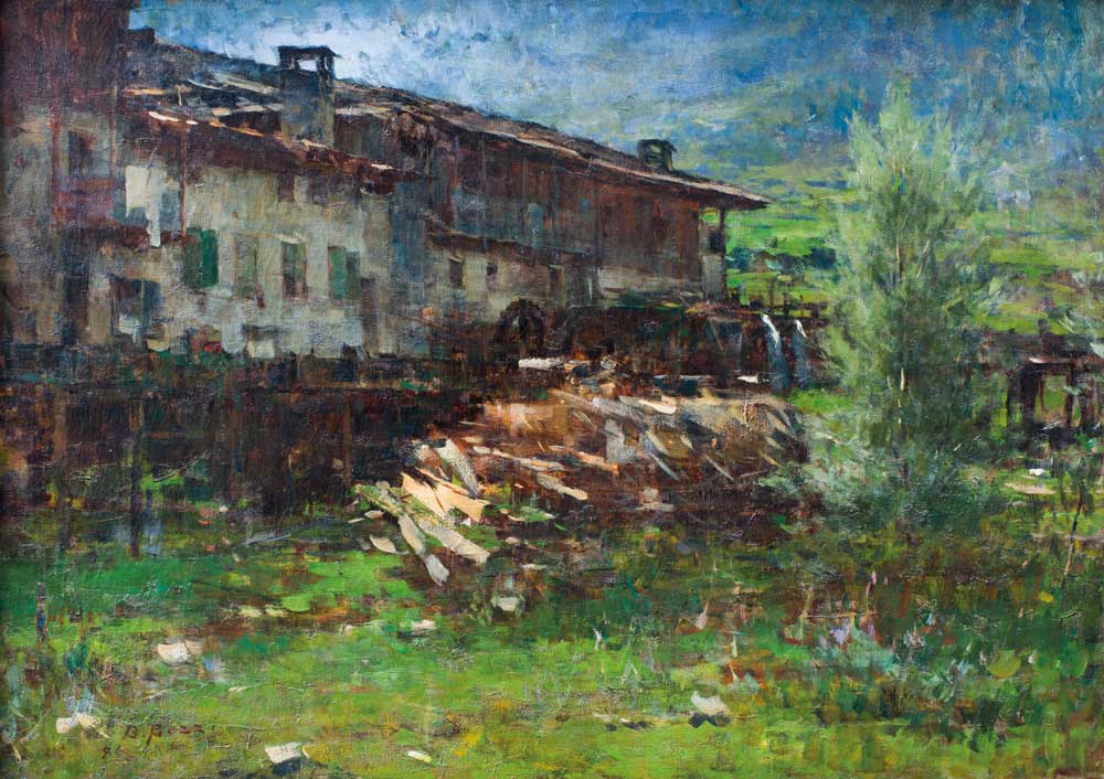 L’ultima esposizione del quadro di Bartolomeo Bezzi, Segherie in Val di Sole del 1886, risale al 1921 alla Galleria Pesaro di Milano. Dalla morte del Maestro, avvenuta nel 1923, l’opera è rimasta sempre in seno alla famiglia Bezzi, custodita dalla moglie Isabella dal Lago e dalla figlia Pia. Dopo esattamente cent’anni, il capolavoro del Maestro viene esposto nuovamente nella collettiva che riassume lo straordinario lavoro di Riccardo Maroni, fautore della raccolta che ha dato lustro e memoria agli artisti trentini.