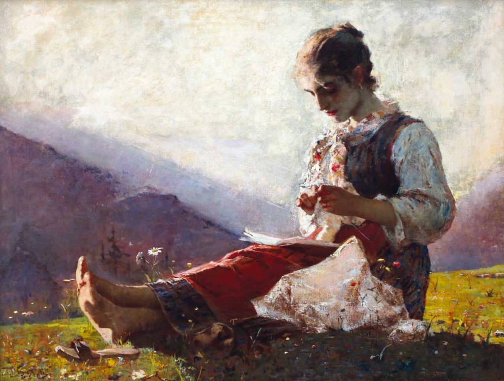Nel 1896 Eugenio Prati sceglie Studio e lavoro da esporre alla Mostra d’Arte dei Fiori di Firenze organizzata per celebrare il cinquantesimo anniversario della fondazione della Società di Belle Arti. Dopo l’esposizione, il quadro è rimasto per centoventiquattro anni in una collezione privata, senza più essere esposto. In occasione di Perle d’arte, finalmente il pubblico può godere nuovamente del capolavoro del Maestro trentino.