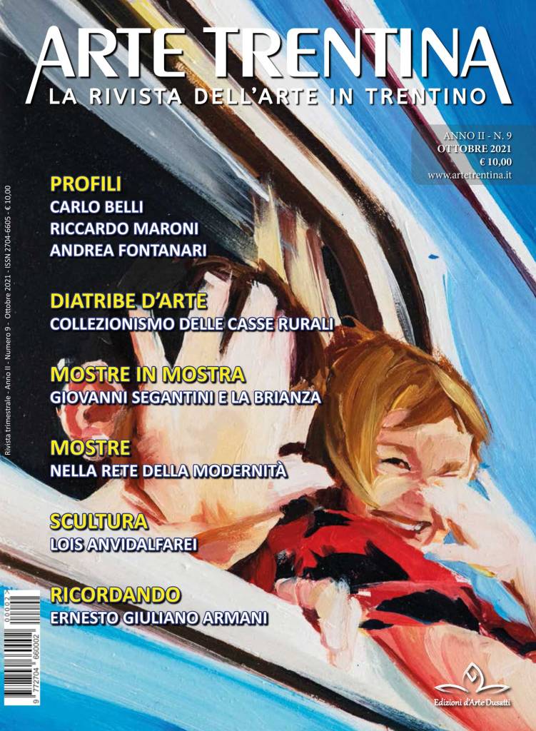 Sarà presto disponibile (dal 4 ottobre in abbonamento e dal 8 ottobre nelle edicole del Trentino Alto-Adige ) l’ormai nota rivista di settore Arte Trentina. Specializzata di arte, non solo regionale, la rivista presenta interessanti interventi di noti scrittori e affermati critici d’arte. Le tematiche di questo numero spaziano nei più disparati ambiti del multipuntiforme mondo dell’arte, che per sua natura è costituito da una fitta rete di relazioni storiche e geografiche: impossibile dunque, parlando di arte, pur scrivendo del locale, non affrontare tematiche che sfociano doverosamente nel globale. Arte regionale si, ma collocabile nella più ampia sfera culturale continentale, di un’Europa caratterizzata da un policentrismo sempre più evidente. Inoltre, da questo numero, il nono dalla sua fondazione nel 2018 «Arte Trentina si arricchisce di otto pagine in più, per darvi una sempre maggiore ricchezza di contenuti e … di qualità».