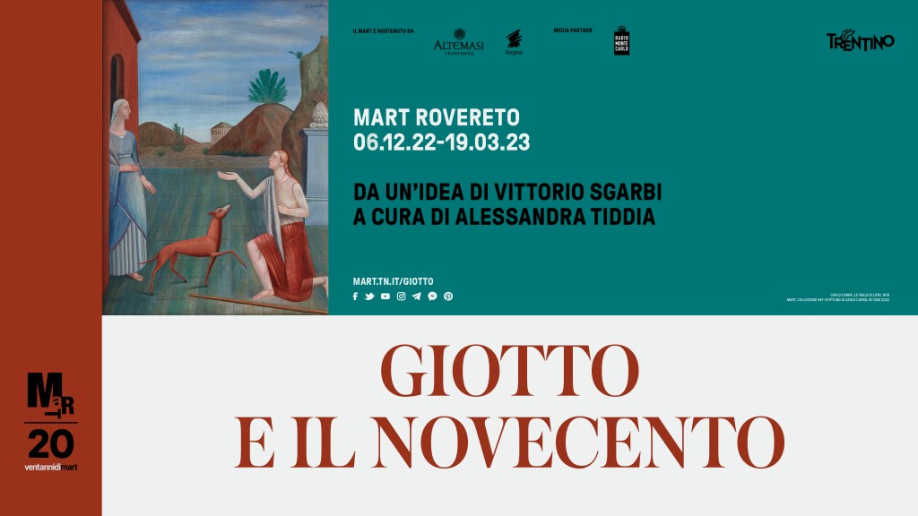 L’ITINERARIO. Il resoconto di un dialogo tra presente e futuro, tra due interlocutori che non guardano più al “fu” ma al “sarà” trova comunque spunto, ispirazione creativa, nel profondo passato giottesco. E’ così che al Mart di Rovereto, da un’idea di Vittorio Sgarbi e a cura di Alessandra Tiddia, è stata allestita una mostra con più di 200 opere di artisti moderni e contemporanei; un percorso senza ostacoli dentro «la grande storia dell’arte»: quella del primo Novecento di Carlo Carrà, Mario Sironi e Arturo Martini; ma anche di Gino Severini, Massimo Campigli, Achille Funi, Ubaldo Oppi fino all’intervento condotto da alcuni artisti internazionali di maggior interesse: Henri Matisse, Yves Klein, Mark Rothko, Josef Albers, Tacita Dean e James Turrell. Secondo un criterio non più etico ma espressivo, non più esterno ma interno, e cimentandosi in un linguaggio non più poetico ma senza schemi metrici l’arte esce così dal canone ottocentesco e storico. Un nuovo sistema di segni entra nel vocabolario del visibile, neologismi che cambiano la forma e l’espressione evolvendo come fa il linguaggio con le nuove parole, inizialmente incomprese poi di uso comune. Al Mart dunque sono esposte le tracce di un’eredità, quella giottesca, che ha influenzato l’opera di alcuni protagonisti dell’arte del secolo scorso: Giorgio Morandi, Fausto Melotti, Mario Radice, Lucio Fontana documentano dunque tutto quello che accadde nel Novecento italiano nonostante i caratteri particolareggiati di alcuni interpreti, e rintracciando in Giotto il principale testimone di una tradizione artistica schiettamente moderna.