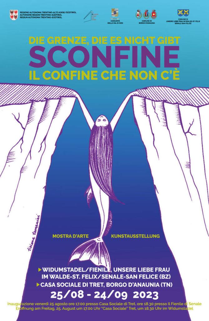 La mostra SCONFINE, organizzata da Marina Eccher, curata da Giuseppe Tasin e Marcello Nebl, verrà inaugurata il 25 agosto alle ore 17.00 presso la Casa Sociale di Tret e alle ore 18.30 al Fienile di Senale a fianco al Santuario e resterà aperta fino al 24 settembre 2023.