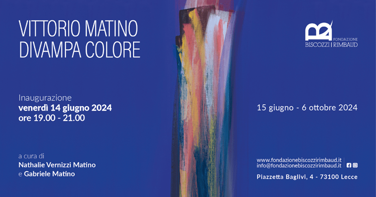 Dal 15 giugno al 6 ottobre 2024 la Fondazione Biscozzi | Rimbaud di Lecce presenta la mostra Vittorio Matino – Divampa colore, a cura di Nathalie Vernizzi Matino e Gabriele Matino. Inaugurazione il 14 giugno alle ore 19.
