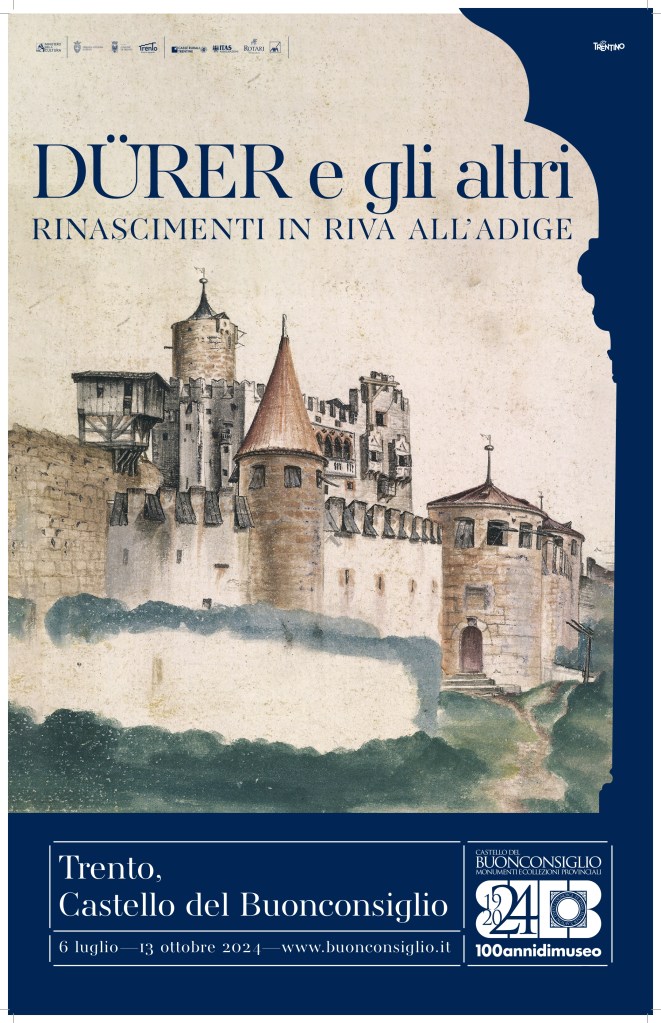 Sarà egualmente affrontato il tema relativo alla presenza di artisti tedeschi a Trento, come documenta più o meno nello stesso periodo la presenza del Crocifisso di Sisto Frey nel Duomo cittadino. Lo stesso grande principe vescovo Bernardo Cles (1485-1539), promotore della costruzione e decorazione del Magno Palazzo al Castello del Buonconsiglio, fu consigliere di Massimiliano I e poi membro della dieta imperiale di Carlo V, oltre che suo gran cancelliere. Egli impiegò non soltanto artisti italiani, ma si fece ritrarre da pittori come Bartholomäus Bruyn, o da medaglisti come Hans Schwarz e coinvolse nella decorazione del Magno Palazzo maestri come Dill Riemenschneider. Si prevede una mostra di circa 80/90 oggetti, fra opere su carta (le stampe, e non solo quelle di Dürer, come mezzo di diffusione di forme ed idee artistiche di primaria importanza, avranno un ruolo fondamentale nell’insieme), dipinti, sculture e arti applicate nelle varie tecniche . Sono esposti straordinari disegni, tra questi l’acquerello del Dürer che raffigura il Castello del Buonconsiglio proveniente dal British Museum di Londra, dipinti, sculture, disegni, incisioni di importanti artisti come Dürer, Alvise Vivarini , Bartolomeo Dill Riemenschneider, Jörg Artzt, Max Reichlich, Michael Pacher, il Maestro di Uttenheim, Hans Klocker, Girolamo Romanino, Marcello Fogolino, Dosso Dossi, gli Olivieri, ed altri ancora, provenienti da grandi istituzioni museali come la Galleria degli Uffizi di Firenze, la Pinacoteca Ambrosiana di Milano, il Kunsthistorisches Museum di Vienna, l’Accademia Carrara di Bergamo, il Museo Correr, il Museum Ferdinandeum di Innsbruck, il museo Museo Thyssen-Bornemisza di Madrid, i Musei di Strada Nuova di Genova e la Pinacoteca Nazionale di Siena. La mostra, promossa dal museo del Castello del Buonconsiglio, in collaborazione con l’Università di Trento e la Soprintendenza per i beni culturali, è a cura di Bernard Aikema, Laura Dal Prà, Giovanni Maria Fara, Claudio Salsi.