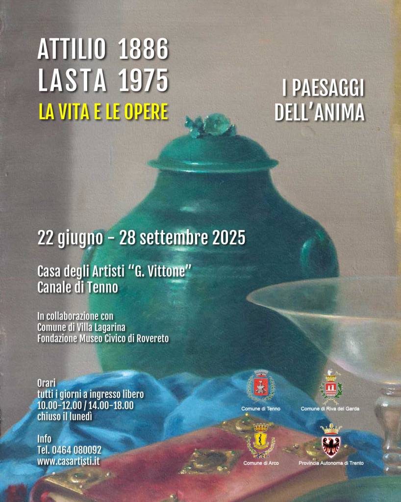 La mostra a Canale di Tenno, dal titolo I paesaggi dell’anima, si concentra sul passaggio dalla figurazione di paesaggio al tema della natura morta. Il momento cardine nella poetica pittorica di Attilio Lasta è la scelta, avvenuta alla fine degli anni Venti, di concentrarsi sullo studio della natura morta che avviene dopo un lungo percorso di formazione e di produzione di opere di paesaggio. Saranno esposte nelle sale della Casa degli Artisti quaranta opere a rappresentare la ricerca della luce nei luoghi e nelle raffinate tavole imbandite dove ogni dettaglio splende.